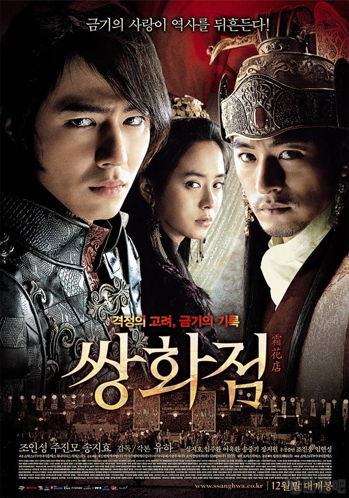 ![]() ◎译 名 霜花店/霜花店:朕的男人(台)/双花店/A Frozen Flower ◎片 名 쌍화점 ◎年 代 2008 ◎国 家 韩国 ◎类 别 剧情/爱情/历史 ◎语 言 韩语/国语 ◎上映日期 2008-12-30(韩国) ◎IMDb评分 7.1/10 from 5283 users ◎IMDb链接 http://www.imdb.com/title/tt1155053/ ◎豆瓣评分 7.1/10 from 126706 users ◎豆瓣链接 https://movie.douban.com/subject/2993846/ ◎片 长 133分钟/143分钟(导演剪辑版) ◎导 演 庾河 Ha Yu ◎主 演 赵寅成 In-seong Jo 朱镇模 Jin-mo Ju 宋智孝 Ji-hyo Song 林周焕 Joo-hwan Lim 沈智浩 Ji-ho Shim 鲁敏宇 Min-Woo No 李丰运 Poong-woon Lee ◎简 介 高丽末年,亲卫军“健龙卫”对高丽王(朱镇模 饰)忠心耿耿,誓死保卫王的安全,其首领洪麟(赵仁成 饰)是王的宠臣,两个相伴多年,关系甚为亲密。远嫁而来的蒙古宝丽公主(宋智孝 饰)倍受冷落,多年来无一子嗣。元朝以高丽国后继无人为由,企图另立新王,把现在的高丽王赶下王位。无奈之下,王只能让自己宠爱的臣子和自己名存实亡的王妃行房,期望王妃怀孕生子,以求让元朝再无易帝的借口。洪麟与王妃初识男欢女爱之欢娱,竟暗生情愫,背着王多次偷偷幽会。王感觉到了洪麟的变化,但还是试图使两人的关系回到过去,可是当他亲眼目睹了王妃和洪麟的偷情之后,盛怒之下对洪麟施行宫刑,自此,三人关系陷入了不可挽回的境地。